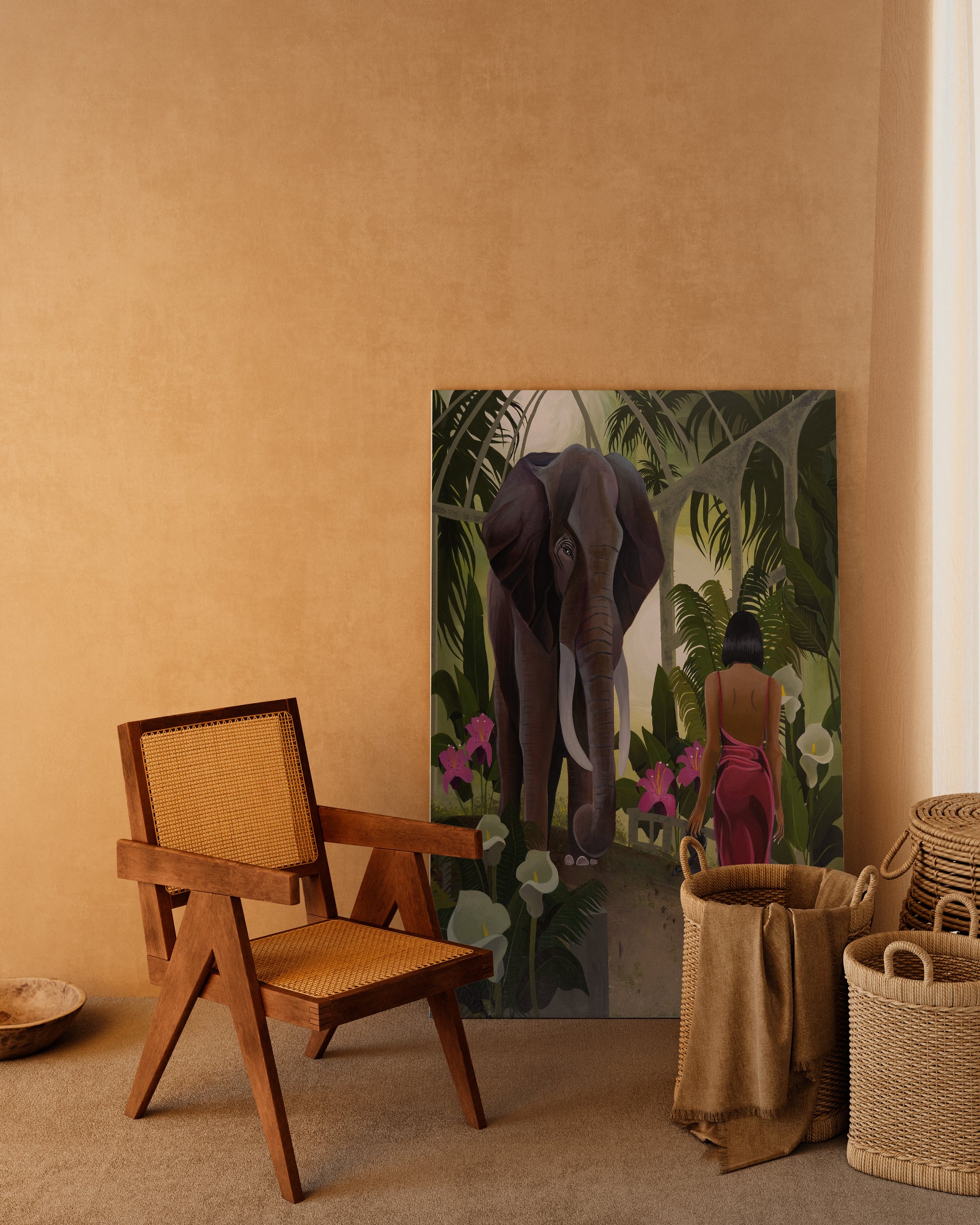 Though she walks barefoot, grounded beside an elephant, it is an invitation to look upward and inward. Because true elevation doesn’t always look like flying. Sometimes, it’s the stillness, the groundedness, and the deep inner clarity that become our elevation.