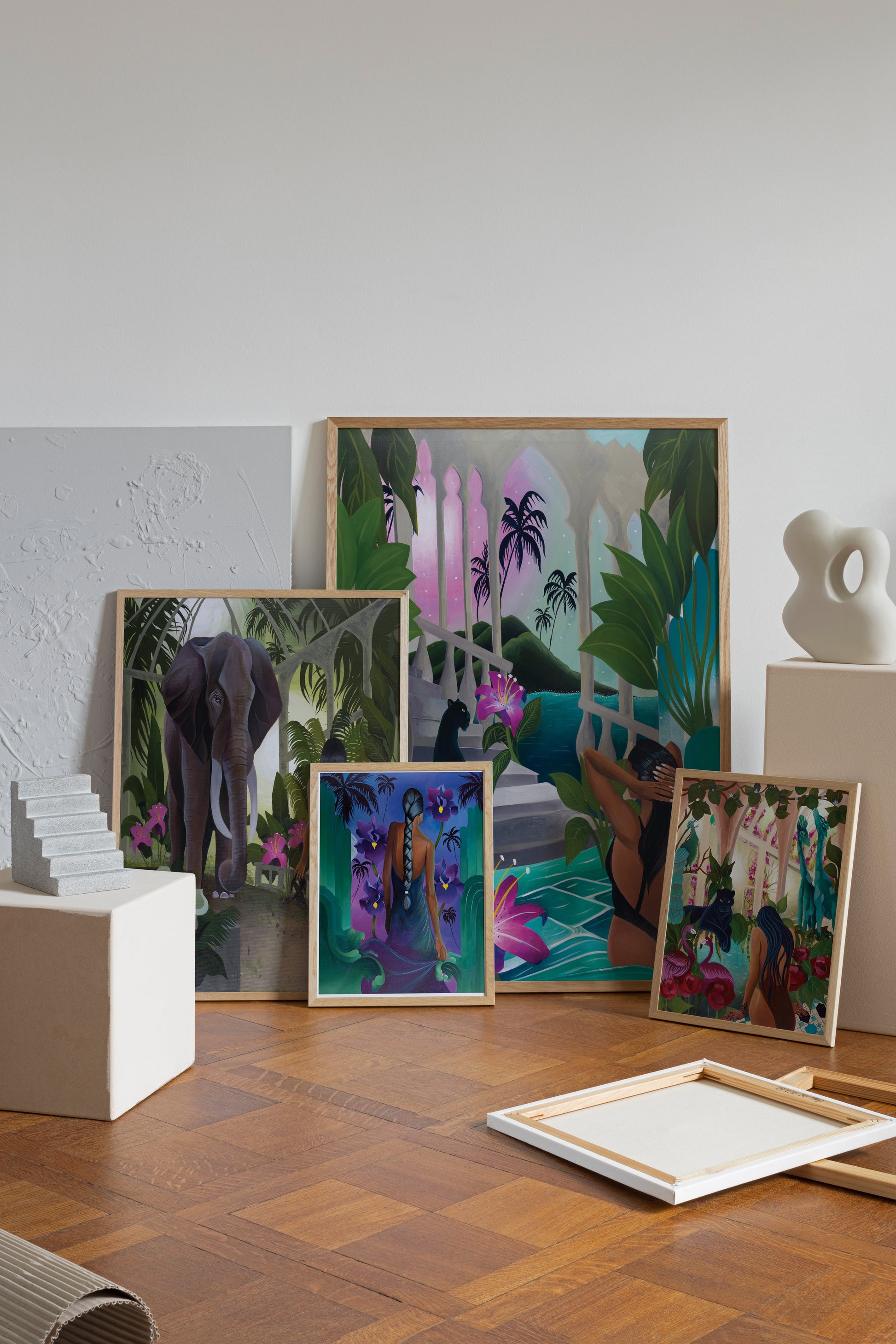 Each piece is a reproduction of an original acrylic painting, printed on 310 gsm museum-grade fine art paper using archival inks.